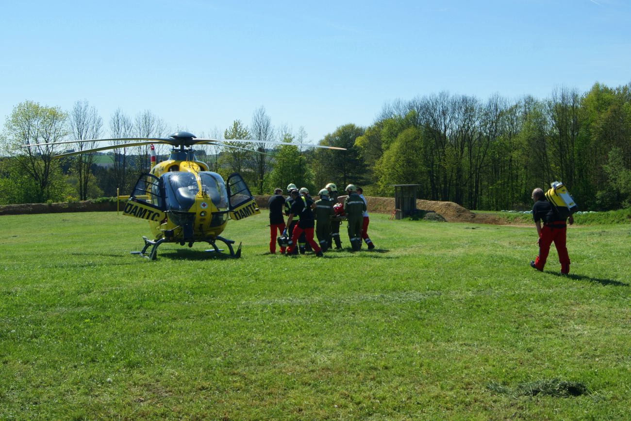 Der Fahrer eines PKWs klagte aufgrund eines Fahrzeugüberschlages über starke Schmerzen im Bereich der Halswirbelsäule. Aufgrund der verstärkten Ausführung des PKWs entschloss man sich das Fahrzeugdach mit dem hydraulischen Rettungsgerät zu entfernen. Um eine schonende Personenrettung zu ermöglichen, wurde die verletzte Person mit dem Fahrersitz aus dem Fahrzeug befreit und dem Team des Rettungshubschraubers Christophorus Europa 3 übergeben.