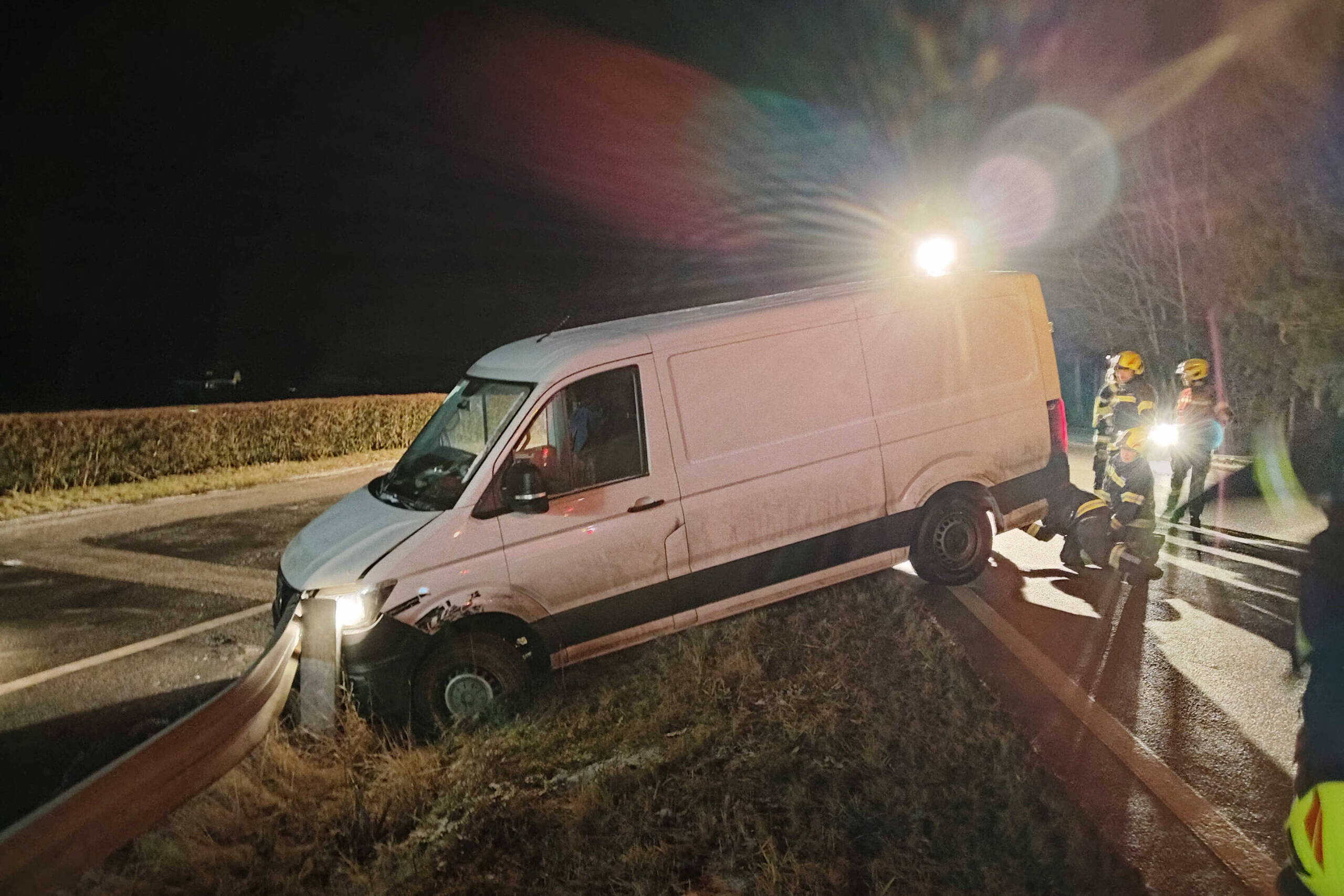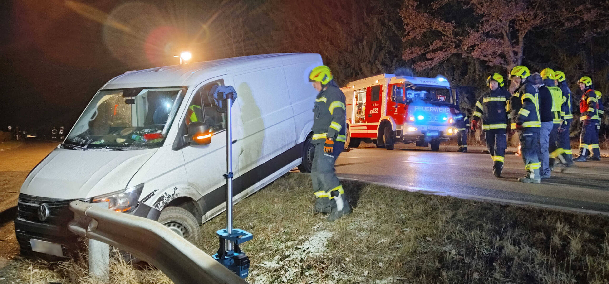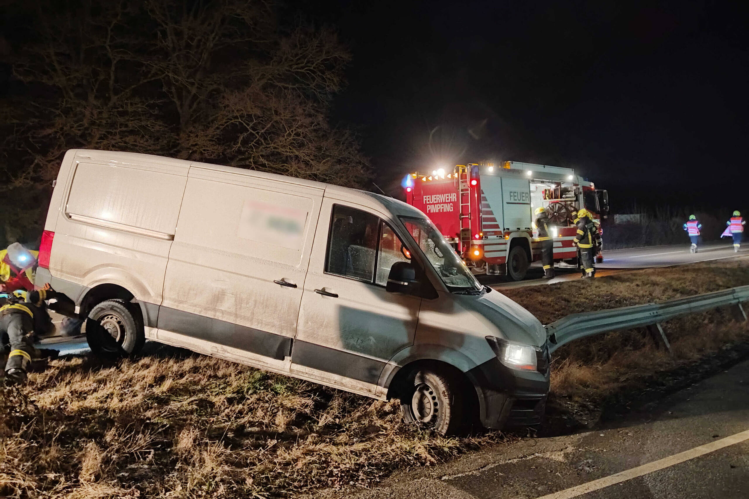 Der Lenker eines Kleinbusses übersah die Abbiegespur zur anliegenden Tankstelle, fuhr eine kleine Böschung hinab und kam dort schließlich zum Stehen. Da sich der unverletzte Lenker nicht mehr selbstständig aus dieser Situation befreien konnte, wurden die Feuerwehren gerufen, um diesen mithilfe der Seilwinde zu befreien. Parallel dazu wurde der Verkehr der B137 über die danebenliegende Tankstelle umgeleitet.