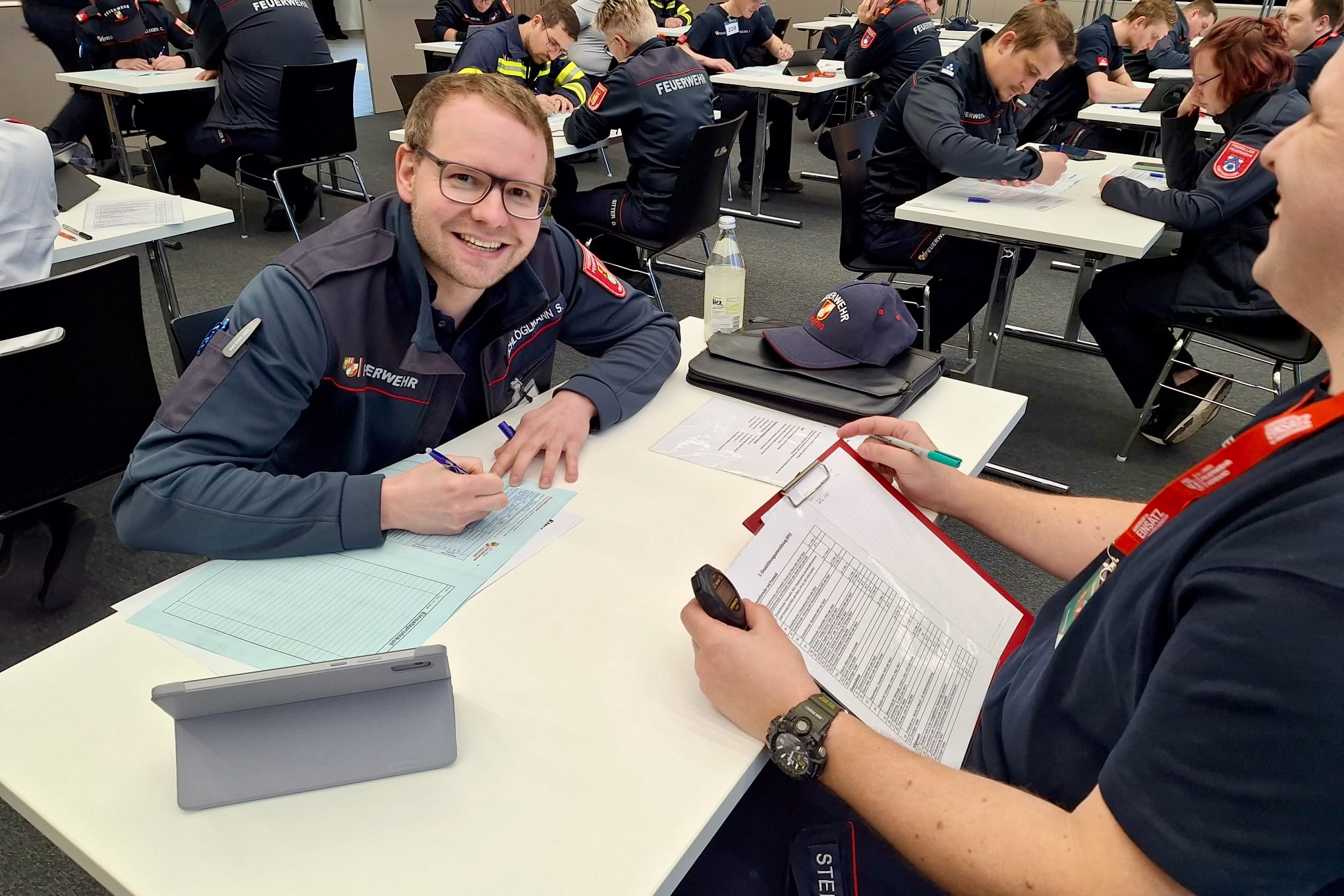 Bei der Leistungsprüfung FKAE – die Abkürzung steht für “Funk, Kommunikation und Aufgaben in der Einsatzleitung” – müssen die Teilnehmer ihr Können und erlerntes Wissen im Umgang mit den verschiedensten Funkgeräten, beim Erstellen von Lageplänen sowie in auf der Station Lotsendienst unter Beweis stellen. Des Weiteren gilt es einige theoretische Aufgaben zu meistern und sich als Funker in der Einsatzzentrale zu Beweisen.